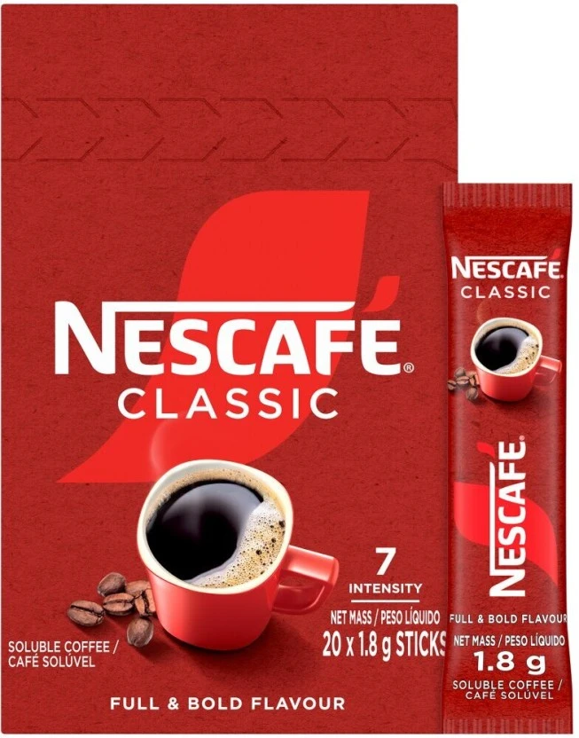 Experience the classic, rich flavor of Nescafe Classic Instant Coffee. This convenient pack contains 20 individual 1.8g single-serve sachets, making it incredibly easy to enjoy a perfectly bold and aromatic cup of coffee whether you are at home, the office, or on the go. Simply add hot water for an instant pick-me-up.