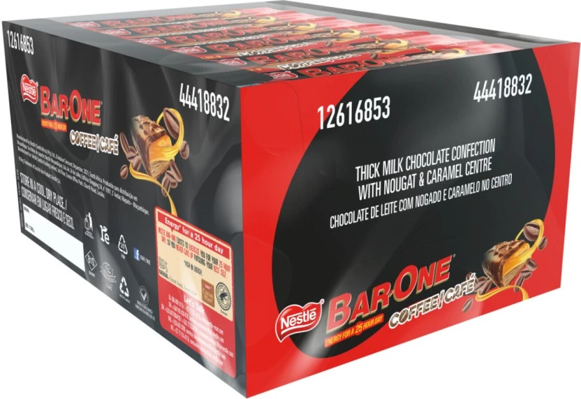 Indulge in the ultimate chocolate energy boost with the Nestle Bar-One Thick Confection. Featuring a satisfyingly thick layer of nougat and a smooth, gooey caramel centre, all drenched in rich milk chocolate. This 24 pack of 84g bars is perfect for powering through your day or satisfying that serious sweet craving.