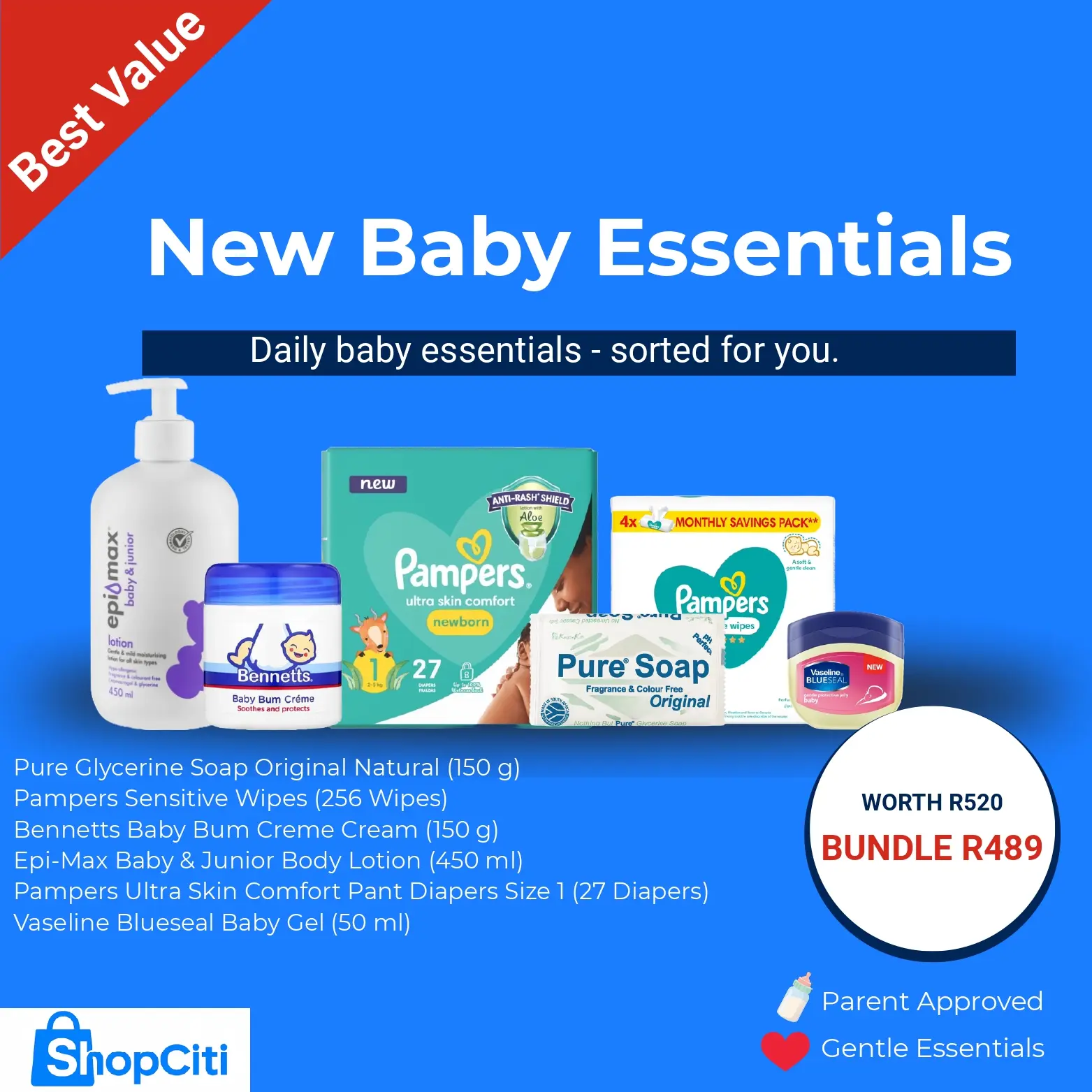 The New Baby Essentials bundle is thoughtfully put together to support your baby’s delicate skin from day one. Featuring trusted, dermatologist-recommended brands, this bundle focuses on gentle cleansing, deep moisturising, and reliable diaper protection. Ideal for newborns and young babies, it gives parents peace of mind while covering daily baby-care needs in one convenient purchase.
