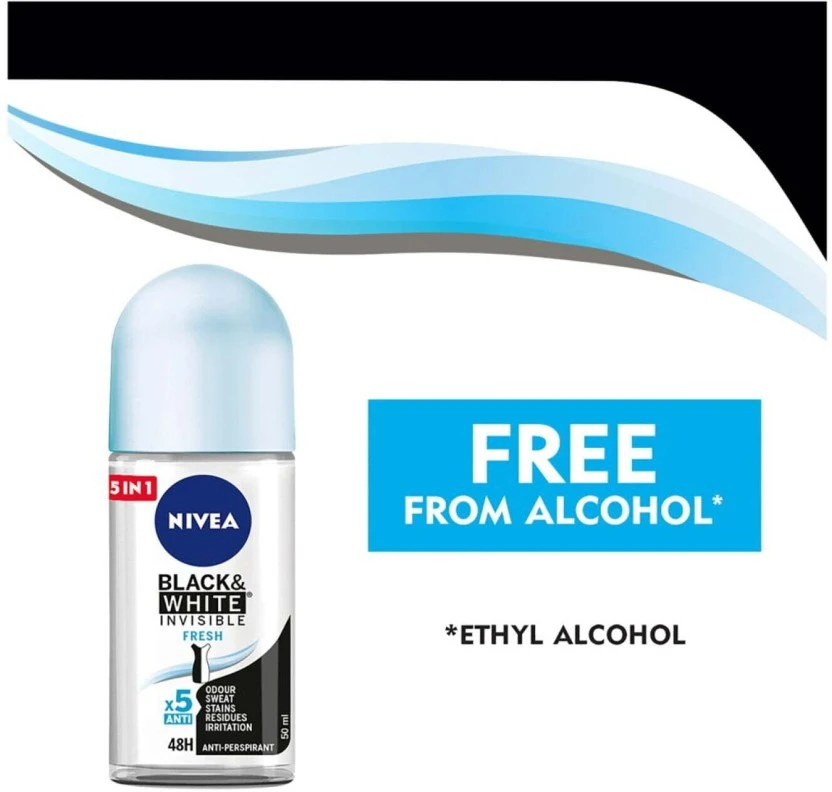 Nivea 5 in 1 Black & White Invisible Fresh Roll-On Deodorant – For Women (50 ml Pack of 6) | Shop Online