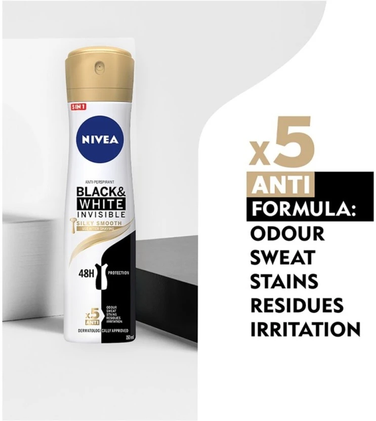 Nivea Antiperspirant Black and White Invisible Deodorant Spray – For Men (150 ml Pack of 6) | Shop Online