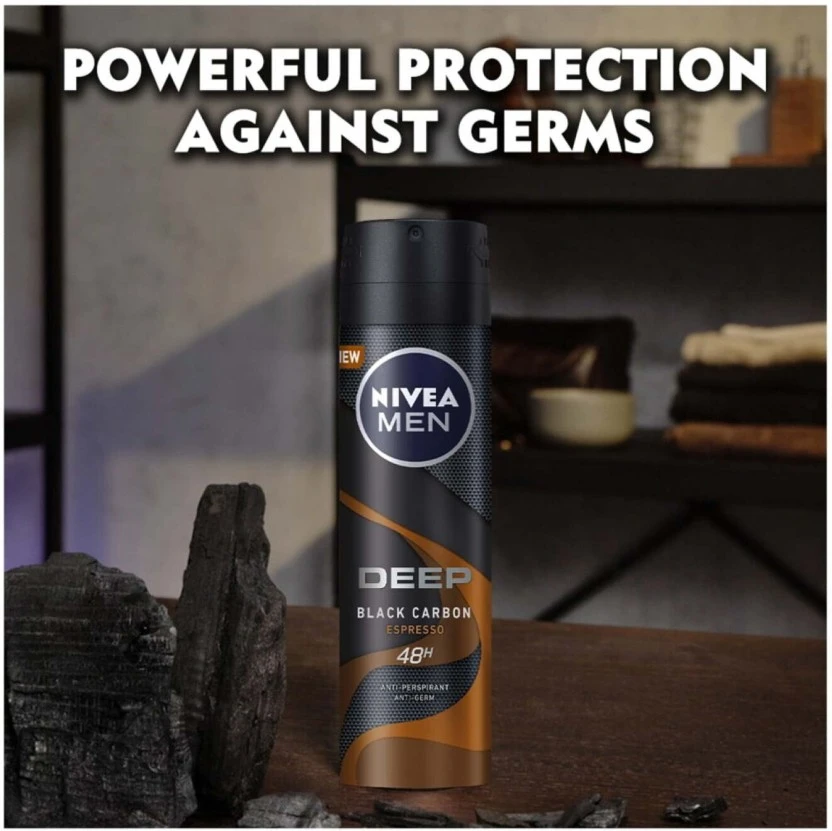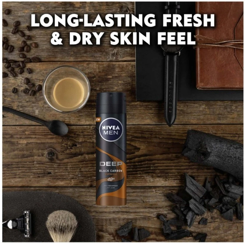 Nivea Deep Black Carbon Espresso Deodorant Spray – For Men (150 ml) | Shop Online