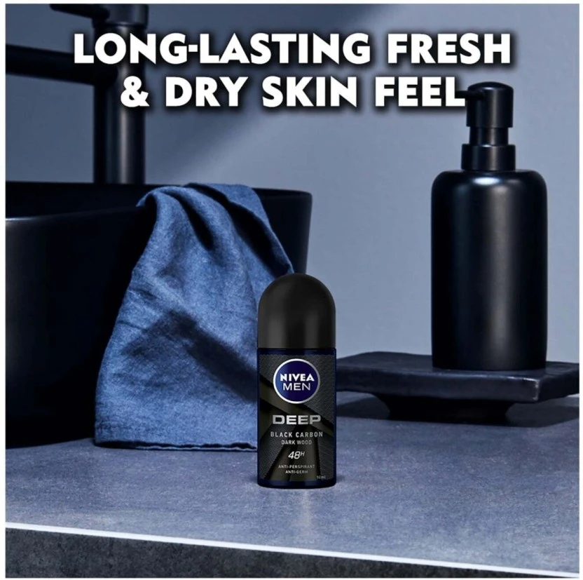 Nivea Deep Dark Wood Deodorant Roll-on – For Men (50 ml Pack of 30) | Shop Online