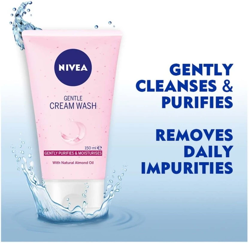 Experience the velvety touch of the Nivea Gentle Creme Face Wash (150 ml). This rich, moisturizing formula effectively removes impurities, dirt, and makeup residue without stripping natural moisture, ensuring a soft, supple, and beautifully clean complexion every single day.
