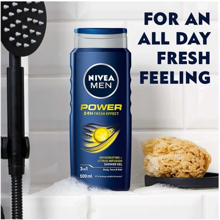 The Nivea Men Power body wash is specifically formulated to meet the high standards of active men, delivering reliable cleansing and care.