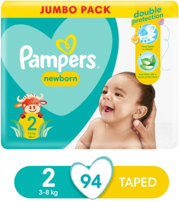Pampers Jumbo Pack Double Protection Tape Diapers Size 0 (94 Pieces)