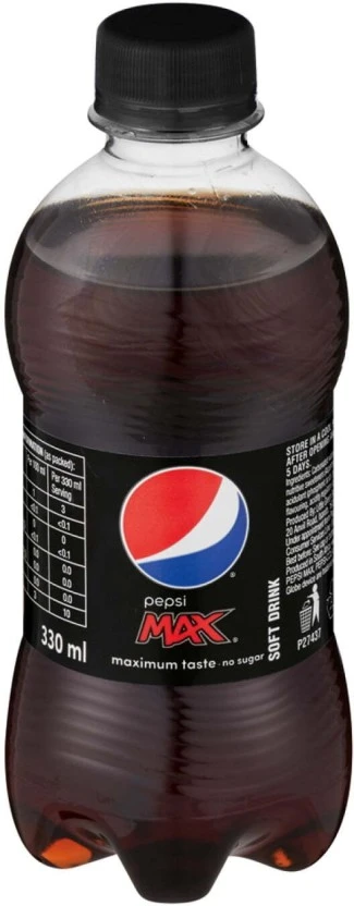 Brand: Pepsi Type: Max – Maximum Taste Size/Pack: 12 x 330 ml Product consists of 12 individual 330 ml cans of Pepsi Max (3.96 Litres total volume). Carbonated maximum taste cola soft drink with sweeteners. Suitable for those following a zero-sugar diet. Store in a cool, dark place. For the best drinking experience, chill thoroughly before serving.