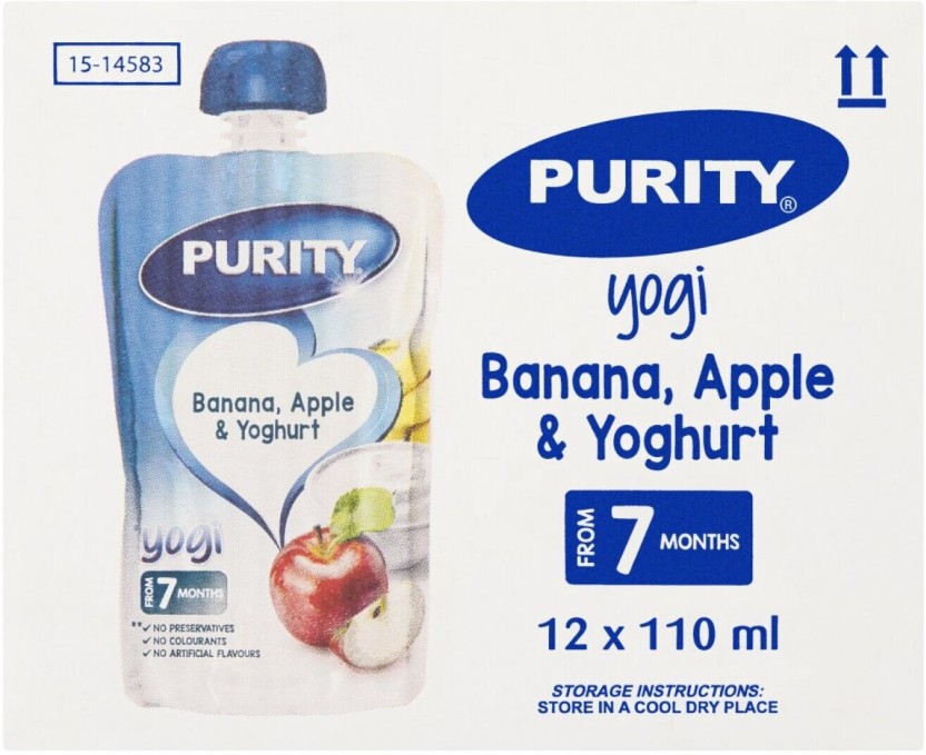 Purity Banana, Apple & Yoghurt Baby Food (110 g) combines creamy yoghurt with the natural sweetness of banana and apple. Comes in a pack of 12 jars for convenience.