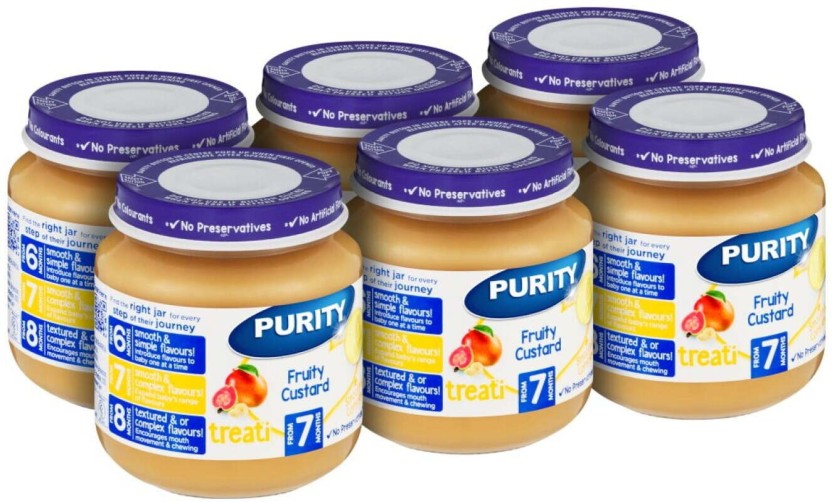 Purity Fruity Custard Delight Baby Food combines creamy custard with natural fruit for a smooth, sweet, and nutritious meal. Perfect for babies from 6 months.