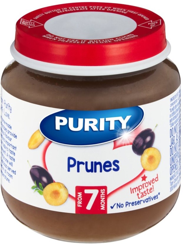 Purity Prunes Baby Food (125 g) is a smooth fruit purée made from real prunes, helping to support healthy digestion. Naturally sweet and nutritious, it’s ideal for babies starting solids.