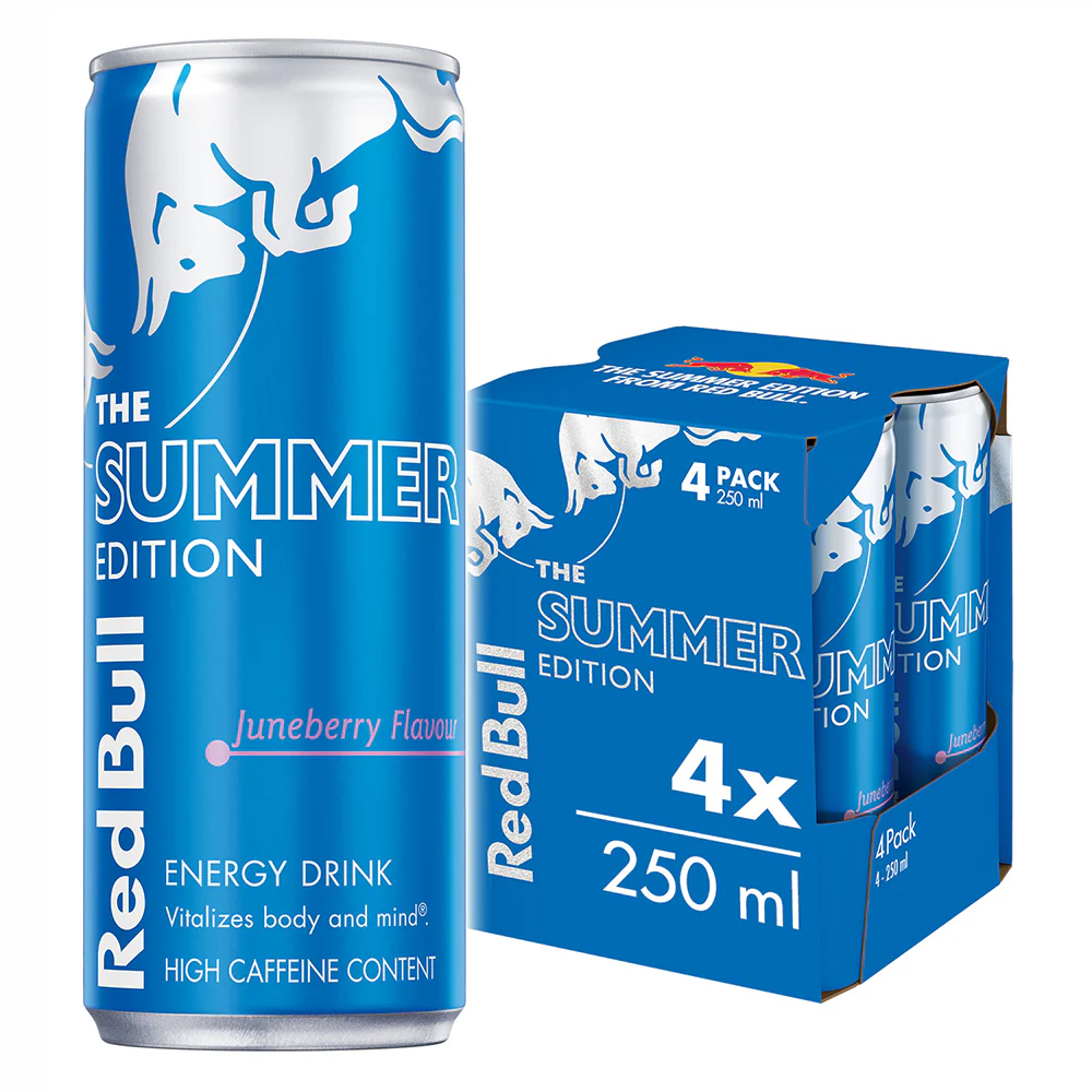 Unleash your potential this season with Red Bull The Summer Edition Energy Drink! Featuring the deliciously unique and refreshing taste of Juneberry, this limited-time flavor provides the signature Red Bull boost to revitalize your body and mind. The convenient 4 x 250 ml pack is your essential fuel for summer adventures, focused study sessions, or whenever you need an extra lift.