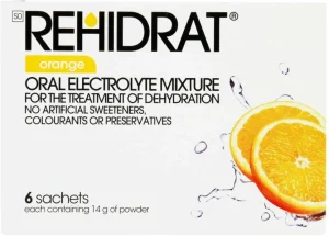 Rehidrat Naartjie Flavour Hydration Powder helps restore electrolytes and fluids lost during dehydration. Comes in 6 convenient strips.