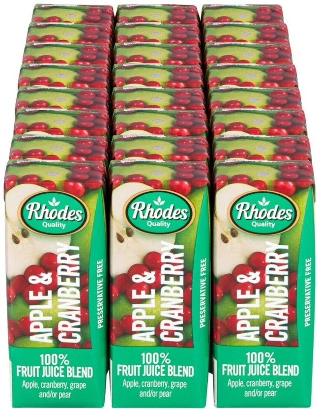 Rhodes Apple & Cranberry 100% Fruit Juice Blend (24 x 200 ml) | Shop Online