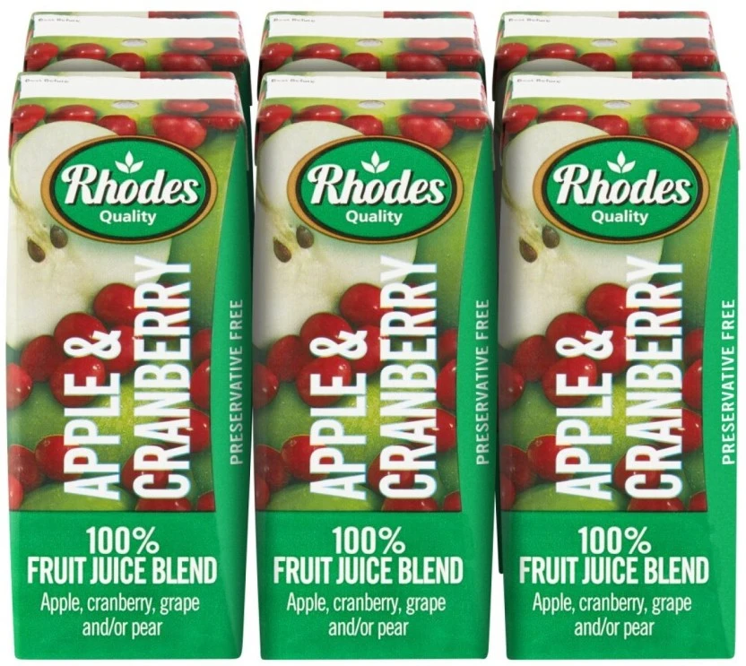 Rhodes Apple & Cranberry 100% Fruit Juice Blend (6 x 200 ml) | Shop Online