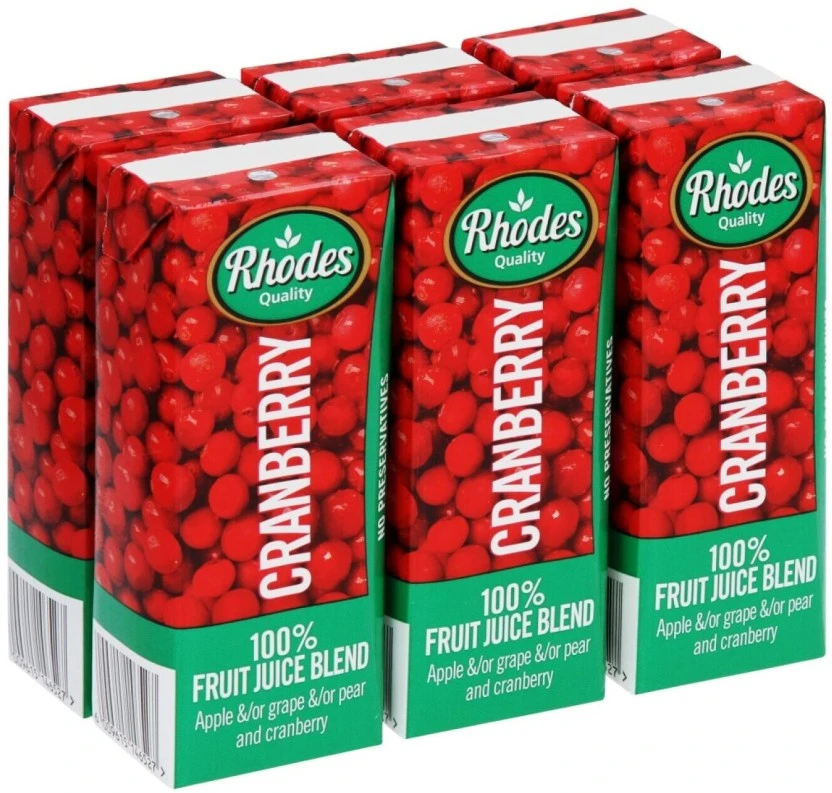 Rhodes Cranberry 100% Fruit Juice Blend (6 x 200 ml) | Shop Online