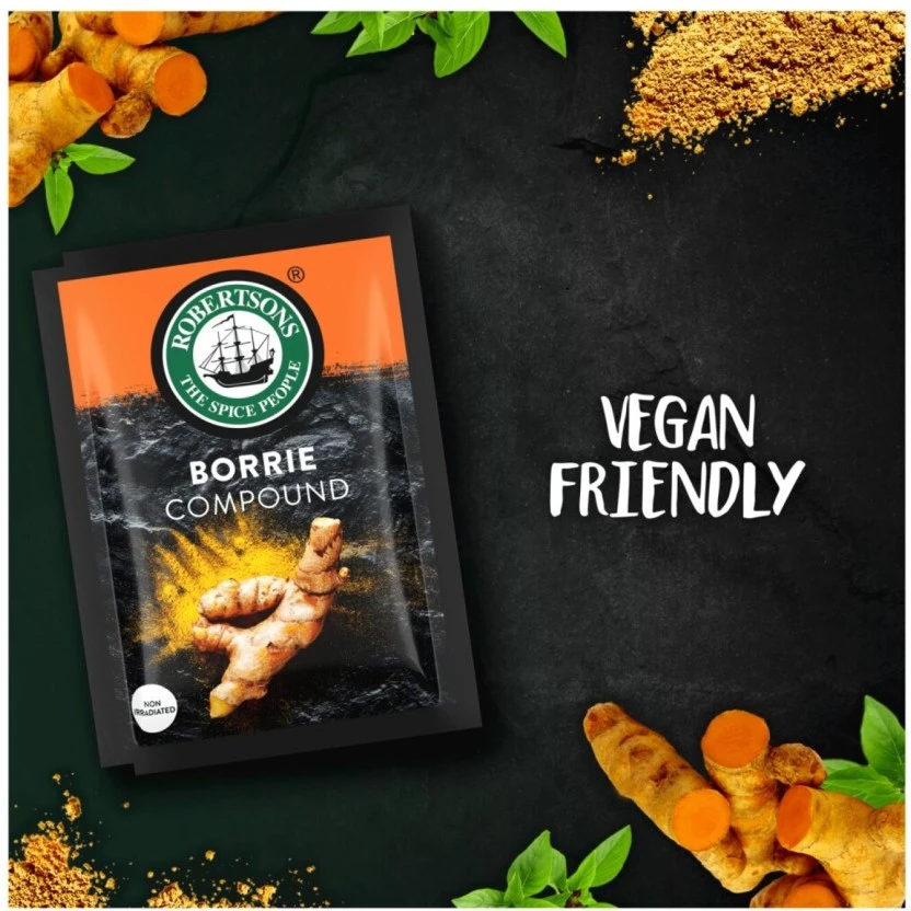Bring the vibrant, signature golden color and warm, earthy flavor of authentic turmeric to all your cooking with Robertson’s Borrie Compound. This convenient bulk unit contains 40 perfectly pre-portioned 7g sachets, guaranteeing freshness and precise measurement for consistent culinary results.
