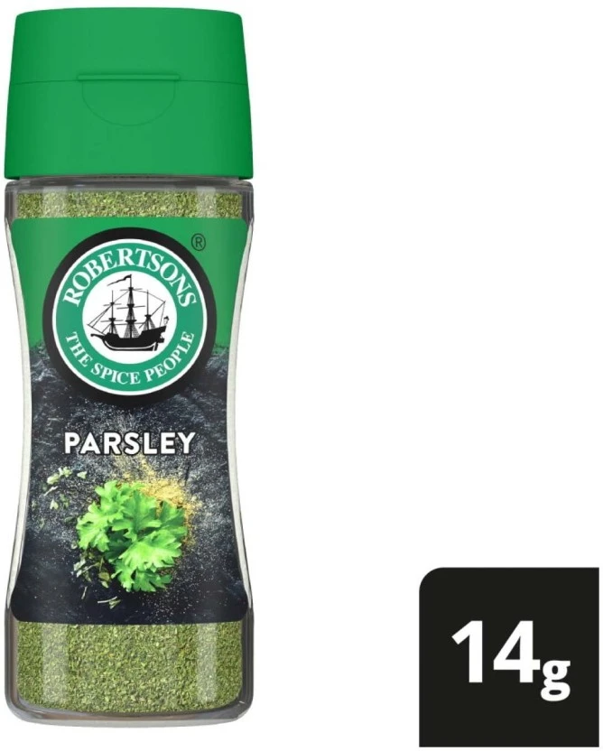 Brand: Robertson's Type: Parsley Size/Pack: 1 x 14 g Product Type: Standard Dried Parsley from the trusted Robertson's brand. Storage Instructions: Keep sealed in a cool, dry place away from direct sunlight to preserve color and potency. Usage Tip: Parsley's delicate flavor is best added towards the end of the cooking process or used as a final garnish.