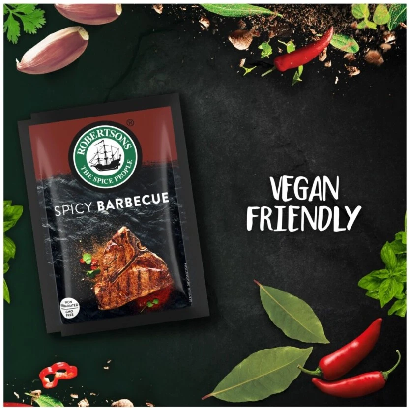 Ignite your grill with Robertson's Spicy Barbeque Seasoning, delivering an intense, smoky heat blend perfect for ribs, chicken, and steaks. Packaged in 6 convenient 7g sachets to ensure freshness and perfect portioning for every cookout.