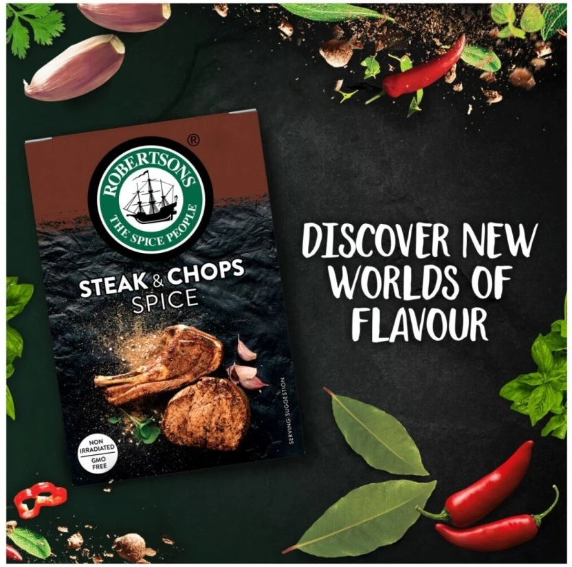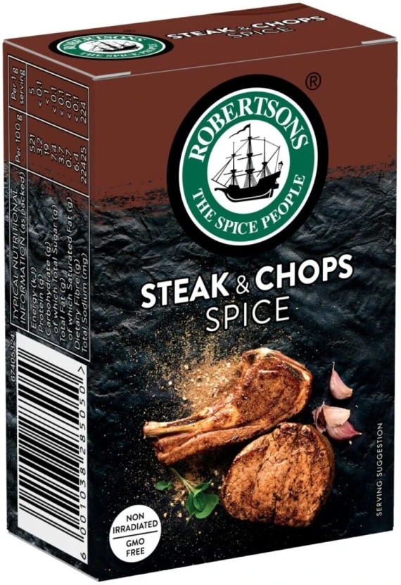Elevate your grilling game instantly with Robertson's legendary Steak & Chop Spice. This robust 80g blend is the secret weapon for perfectly seasoned, mouth-watering steaks, beef, and pork chops every time, delivering that classic savory flavour you trust.