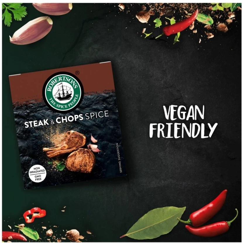 Unleash maximum flavor on your barbecue or grill with Robertson's classic Steak & Chops Spice. This essential blend features robust, savory notes perfect for beef, lamb, and pork, now available in a convenient multi-pack of five 35g sachets to ensure freshness every time.