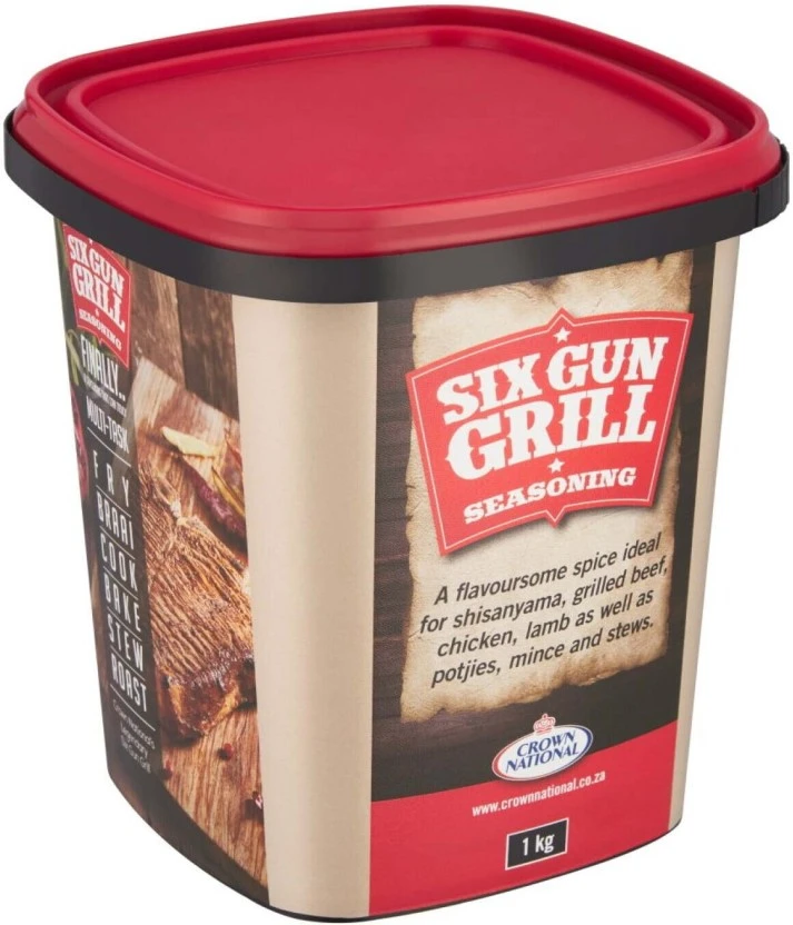 The iconic Six Gun Grill Barbecue spice is the secret weapon for any serious griller! This generous 1kg pack ensures you'll never run out of the bold, authentic flavor that instantly transforms meat, chicken, and veggies into culinary masterpieces. Perfect for intense rubs, savory marinades, or simply sprinkling over your braai favorites. Get ready for legendary barbecue flavor with the convenience of this bulk size.