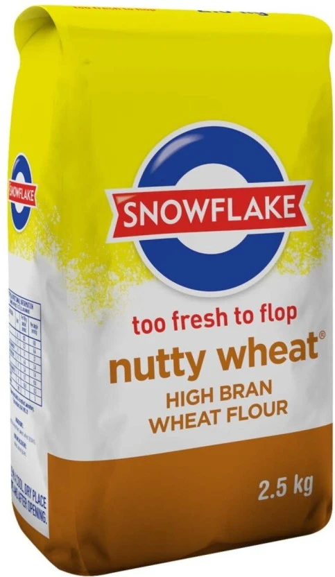 Brand: Snowflake Type: Nutty High Bran Wheat Flour Size/Pack: 2.5 kg Product Details: Single 2.5 kg pack of Snowflake Nutty High Bran Wheat Flour. Usage Recommendation: Suitable for hand-baking, bread machines, and blending with other flours to enhance nutritional value and flavor. Storage Guidelines: For optimum freshness, store in a cool, dark, and dry area. Keep sealed tightly in an airtight container once opened.