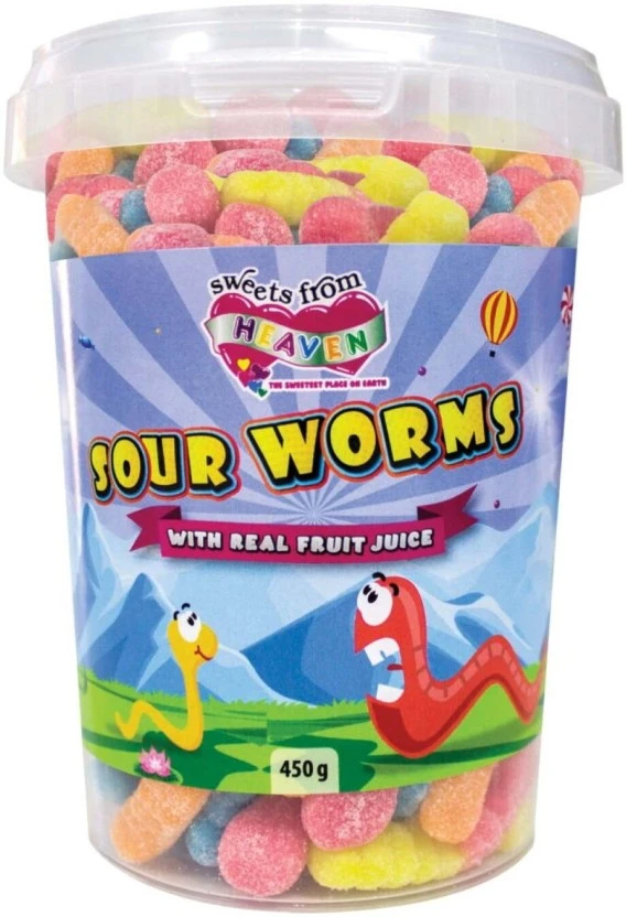 Dive headfirst into the irresistible tang of Sweets From Heaven Sour Worms! This generously sized 450g pack is bursting with chewy, colorful gummy worms dusted in intense sour crystals, delivering a mouth-watering kick that sour candy lovers crave. The ultimate treat for parties, sharing, or indulging your sweet and sour tooth.
