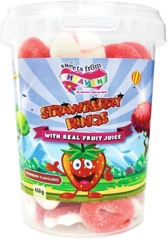 Dive into a cloud of fruity delight with Sweets From Heaven Strawberry Rings! These iconic, chewy strawberry gummy sweets deliver an intense burst of fresh flavor in every ring. Perfect for sharing or savoring all to yourself, this generous 450g pack is guaranteed to satisfy your deepest sweet cravings.