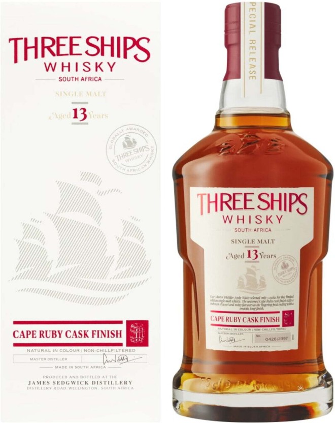 Three Ships Whisky is a premium South African single grain whisky offering a rich, smooth flavor with notes of fruit, honey, and subtle oak. Perfect for neat sipping, on the rocks, or in sophisticated cocktails.