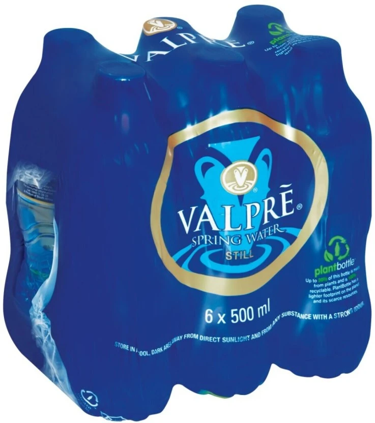 Brand: Valpre Type: Still Spring Mineral Water Size/Pack: 6 x 500 ml Valpre Still Spring Mineral Water is recognized for its commitment to sustainable sourcing and natural filtration processes. For optimal taste and refreshment, store the unopened bottles in a cool, dry place away from direct sunlight. The 500ml bottle size is perfectly portable and fits easily into car cup holders, gym bags, and backpacks.