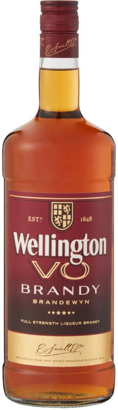 Wellington VO Brandy in a 12-bottle pack, offering smooth South African brandy with oak and caramel notes, perfect for events or commercial use.